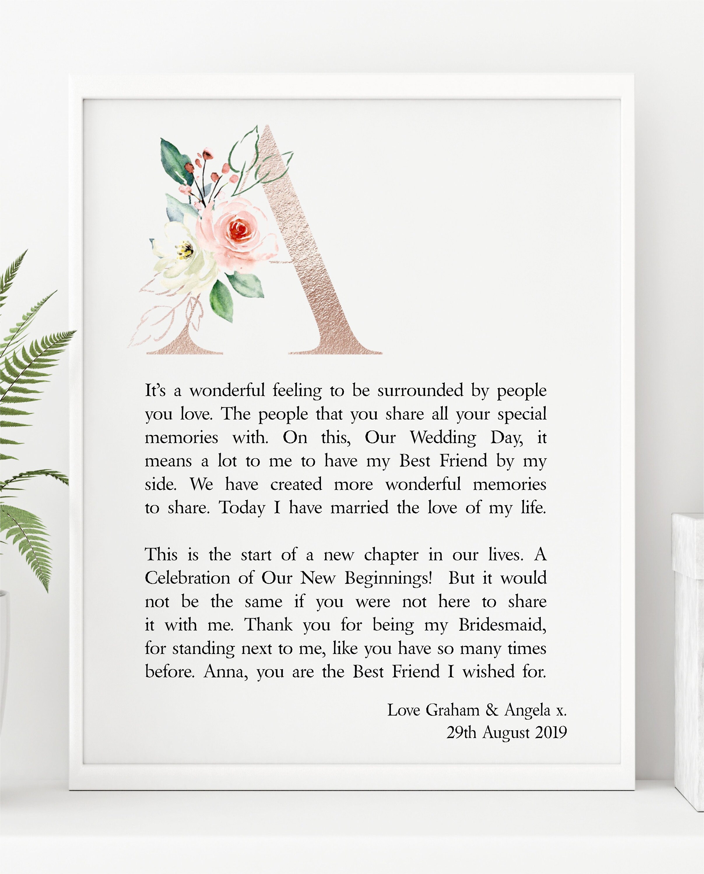 Friend Wedding Poem Personalised Framed Print Bridesmaid Etsy