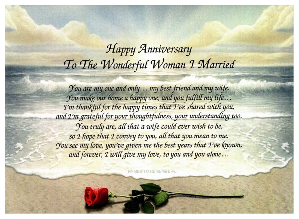 Amazon Com Gift For Wife To The Wonderful Woman I Married Love Poem 1st 5th 10th 15th 20th 25th 30th Rose On Beach Home Kitchen